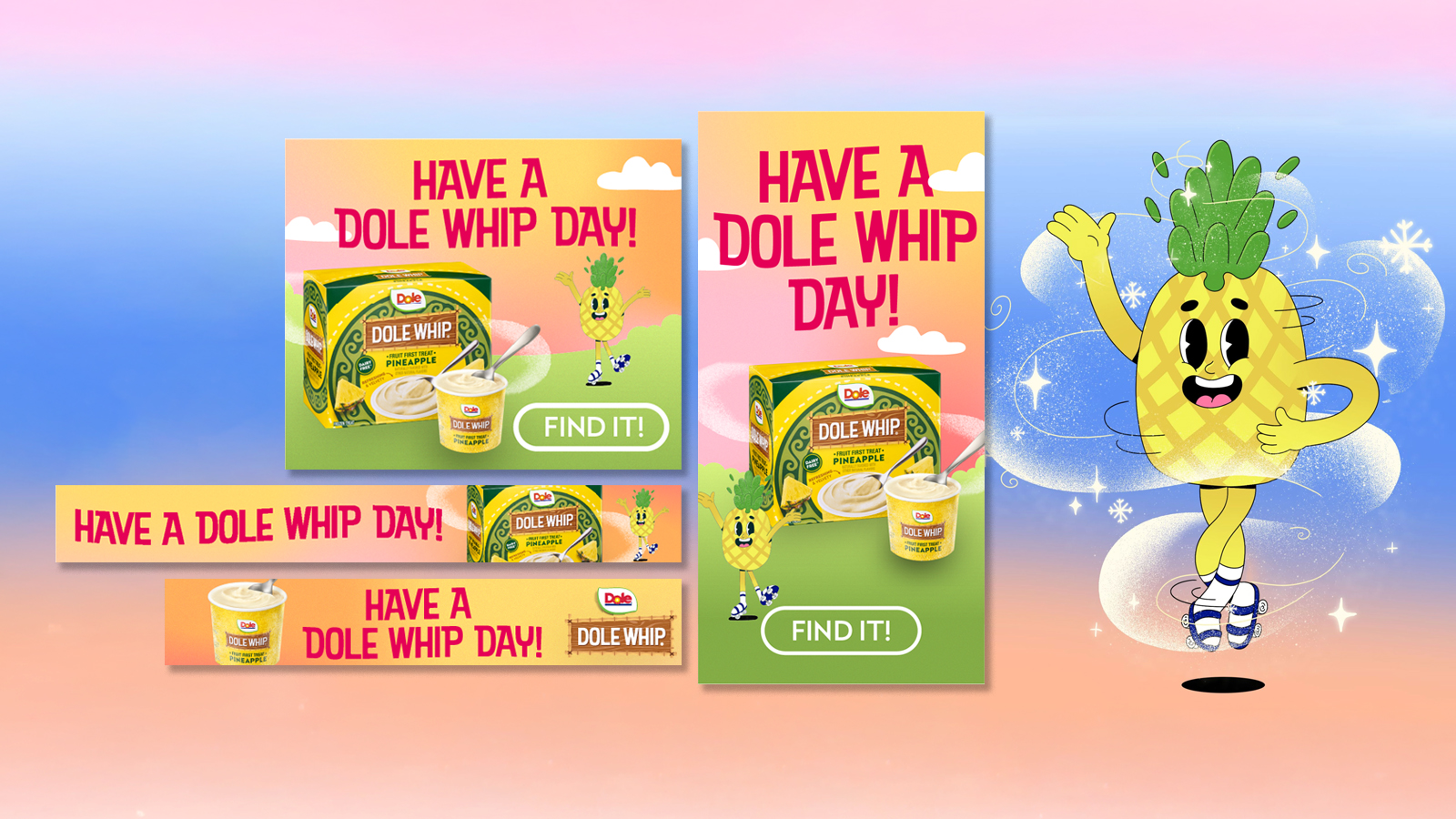 Dole Whip was known to many Disney park-goers in its original form, but needed to reach a much broader audience in support of a relaunch at physical U.S. grocery/retail stores. We developed a campaign anchored in the invitation to “Have a Dole Whip Day,” leveraging nostalgia and a catchy jingle to position the brand as a better-for-you accessible daily treat. In just two months we spun up a fully integrated high-reach video, social, influencer, PR and shopper effort spanning brand and performance levers that generated massively positive impact for the business and brand.