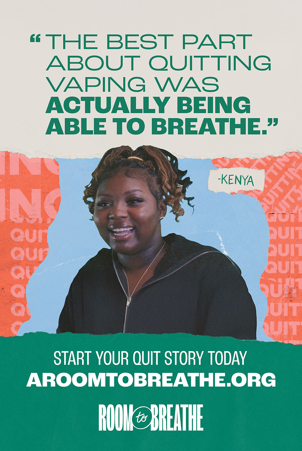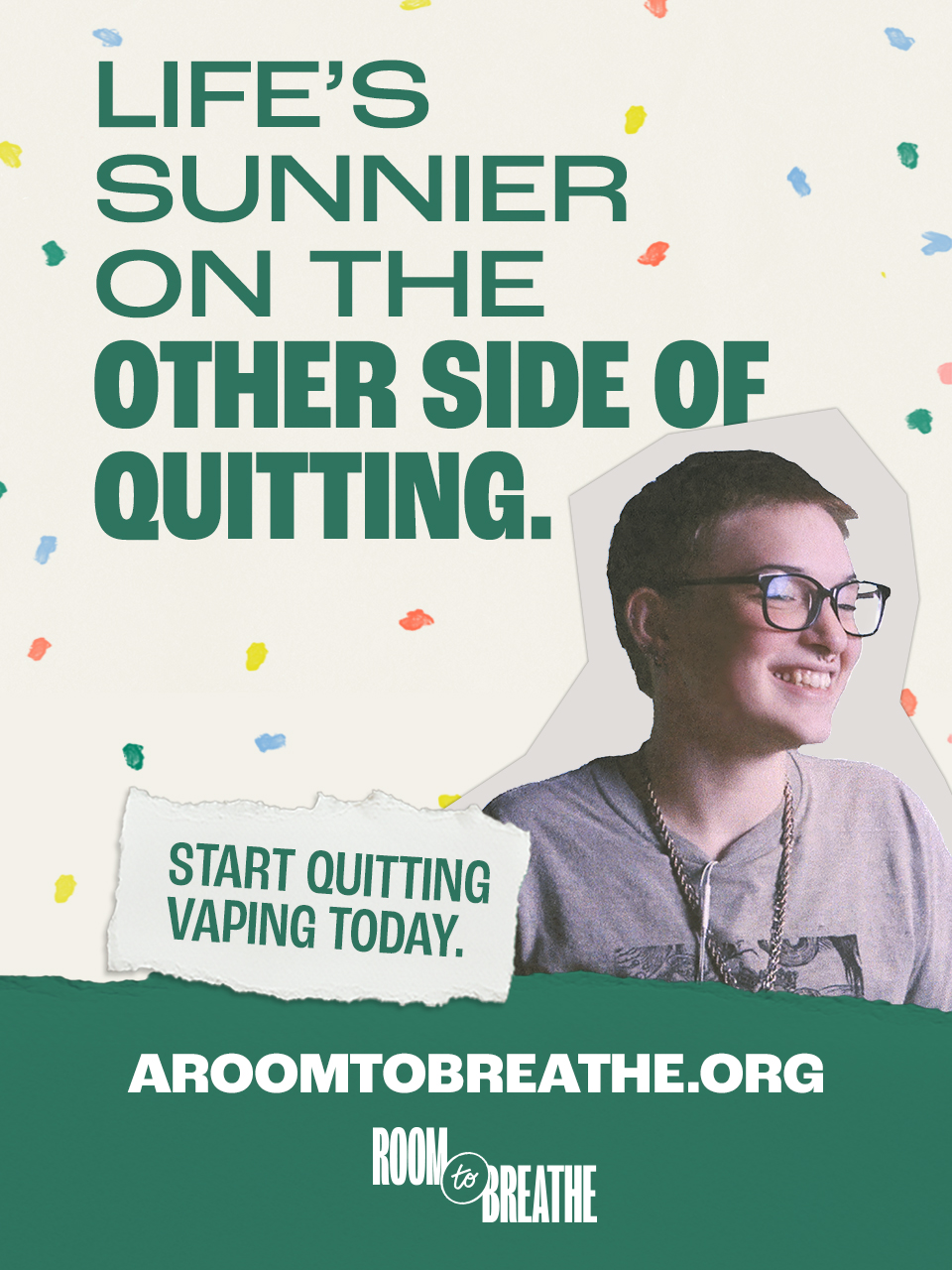 e-Cigarettes usage among youth remains a major public health issue. Given the significant role of peer influence, Haberman collaborated with the Minnesota Department of Health and real teens to create “Room to Breathe,” an authentic, empathetic, and peer-owned brand. Inspired and voiced by teen volunteers, the campaign extension provides facts on mental health, well-being, and the harms of vaping, using metaphors for nicotine dependence struggles.