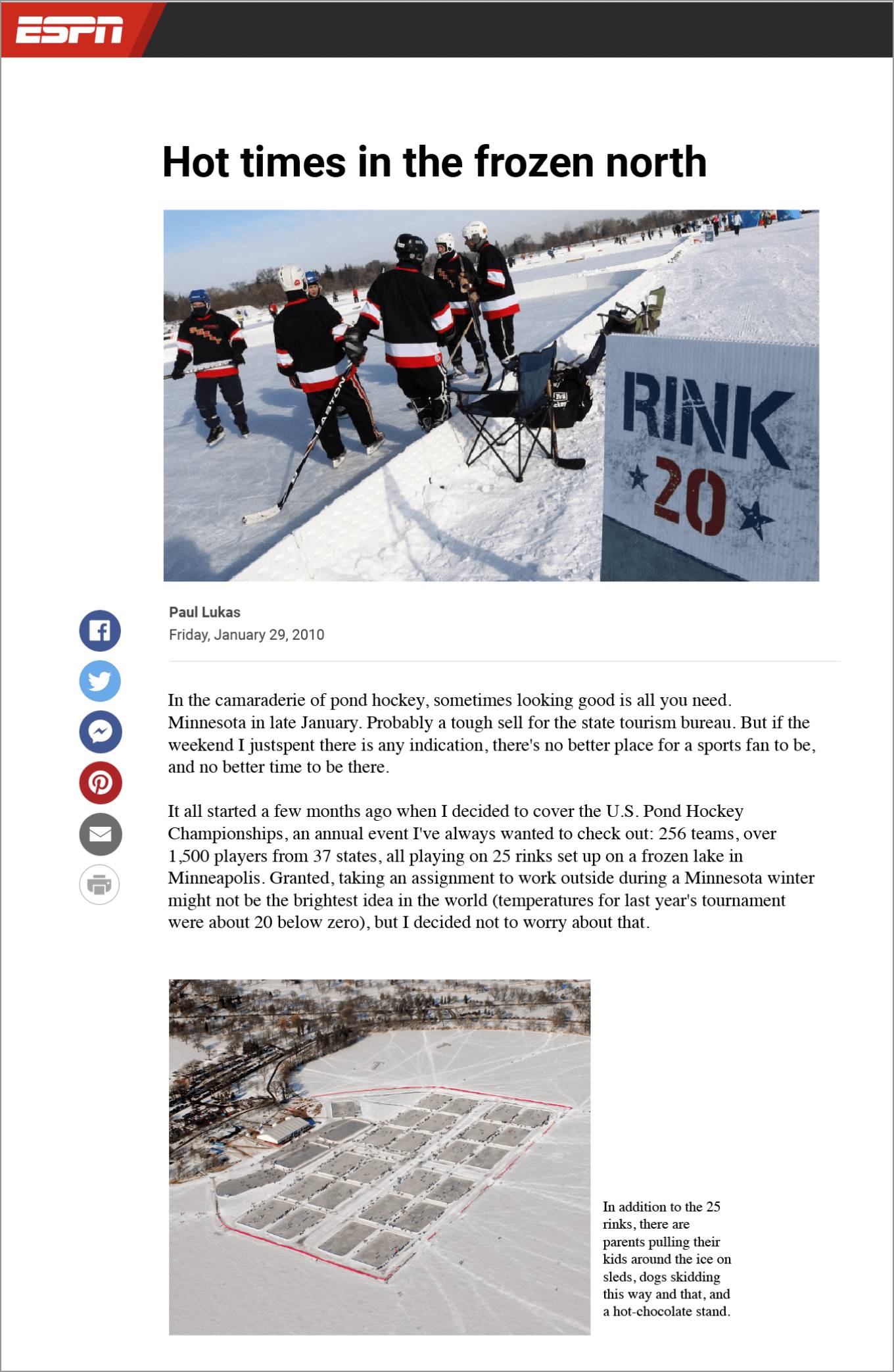 Throughout the annual tournament, Haberman recruited national media personalities to participate in the event, including reporters from the Today Show, The New York Times, Outside Magazine and Sports Illustrated; we leveraged top tier professional hockey players for media interviews; and gathered testimonials from prominent business leaders, including Apple executive Guy Kawasaki and Boeing CEO James McNerney. We also helped develop the incredibly successful documentary Pond Hockey featuring Wayne Gretzky, Lou Nanne and dozens of other amazing, high profile ambassadors.