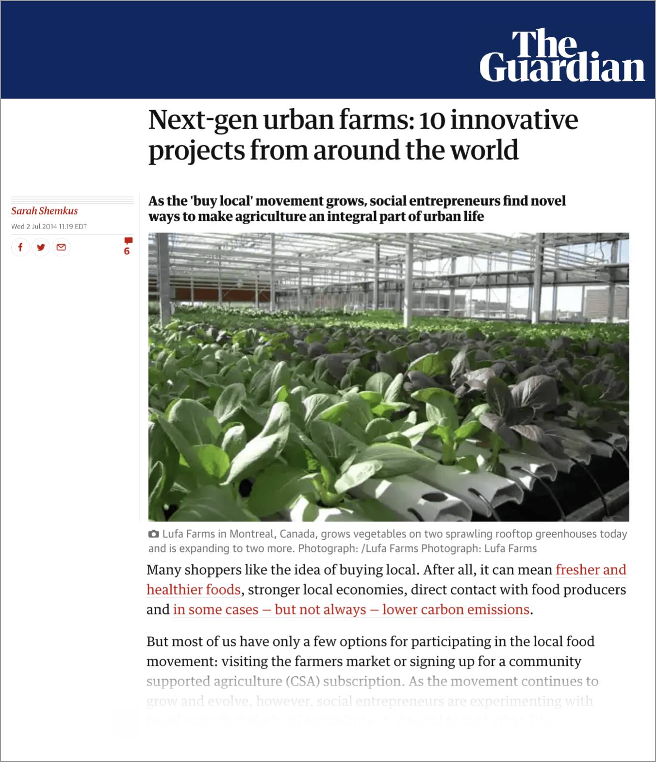 The Urban Organics story has global implications, not only for the project’s entirely-new approach to agriculture but also for its potential to ease the world’s food crisis. It’s also a business story about making profits while doing good things in the world. Armed with so many stories, Haberman generated awareness in both local and national media, for both the category and Urban Organics. Features in Newsweek, Fast Company, and The Guardian, which called Urban Organics one of the 10 most innovative projects from around the world.